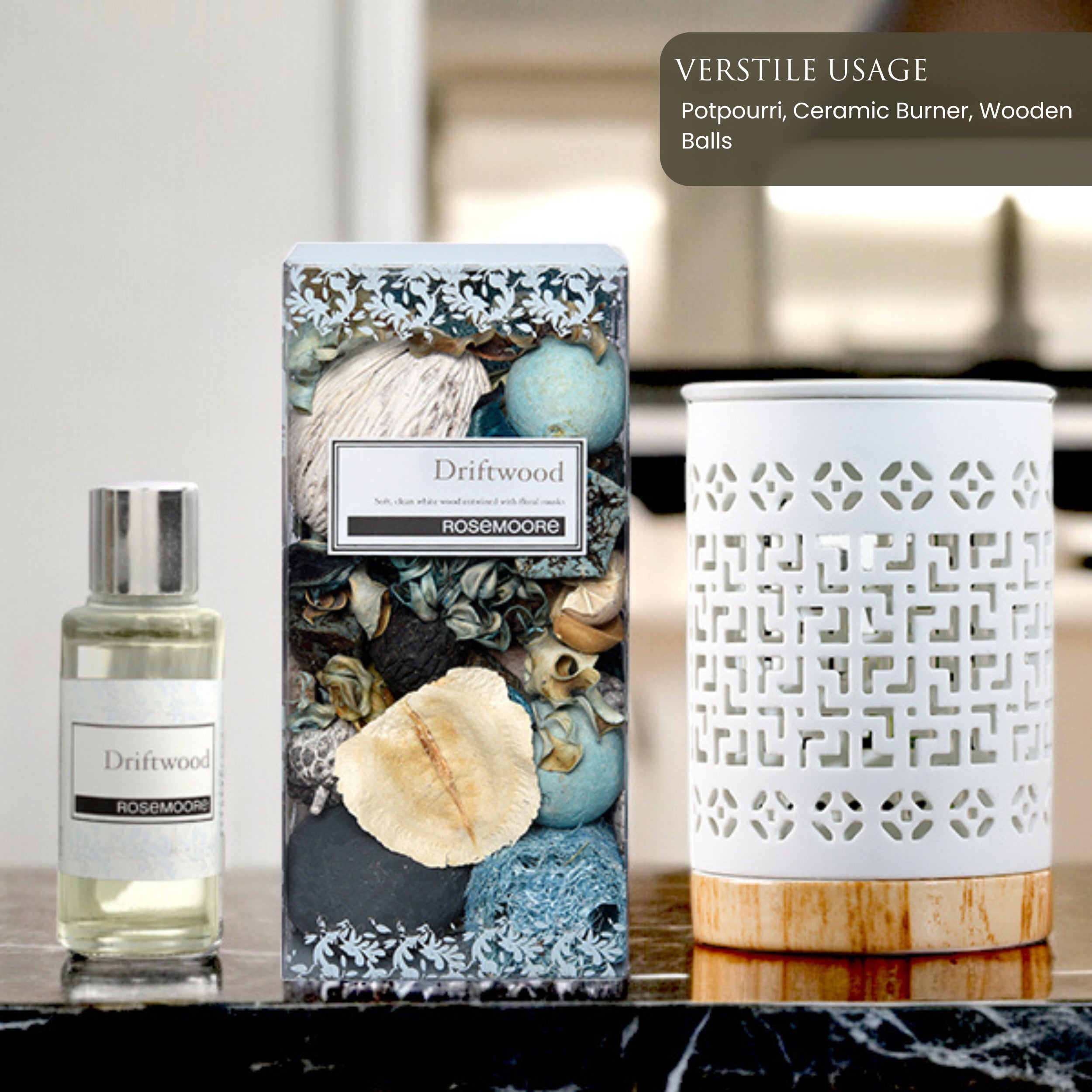 Using an oil burner is an easy way to disperse the Driftwood fragrance in your home, living areas, office spaces, hotel rooms, etc. Unlike a conventional oil burner, an electric burner uses electricity to operate and is convenient to use. These burners require water and some drops of oil to operate. The Rosemoore burners, which are elegantly designed, also make a stylish add-on to your home decor.