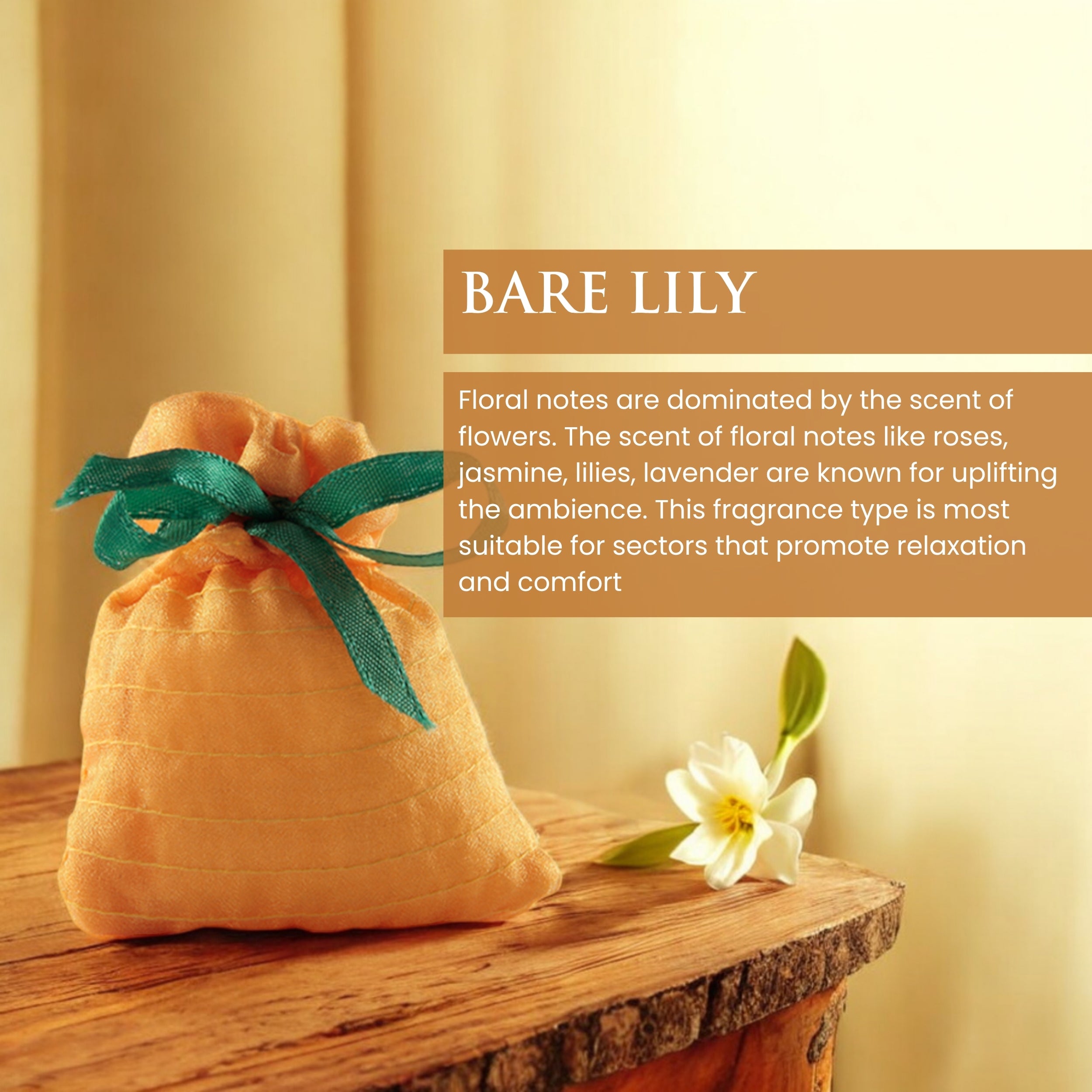 Barelily's exotic floral aroma with ginger overtones creates a calming and soothing atmosphere that promotes a peaceful state-of-mind. And, lilies are those lucky flowers to have less competition when it comes to fragrances; its fragrance is simply irresistible. Thus, this oh so addictive infusion packed as Barelily Fragrant Scent Sack invigorates the environs with a dash of positive energy all around.