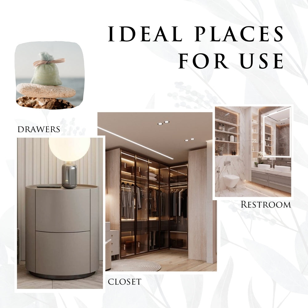 The enchanting Driftwood Scented SacksΒ of scented beads having an aroma of driftwoodis extremely tranquil. It can easily be hung on door knobs and can be placed in powder rooms, cupboards, suitcases, drawers, lockers, closets, bathrooms, et alΒ for long lasting aroma.