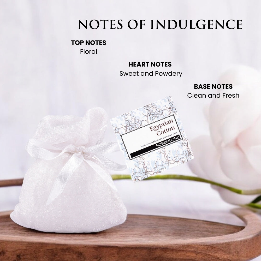 Egyptian Cotton Fragrant Scent Sack lures you to discover your most cherished dreams and desires and breaks the monotony of life. The fragrance is sweet with light notes of floral in contrast with more enigmatic and striking notes.