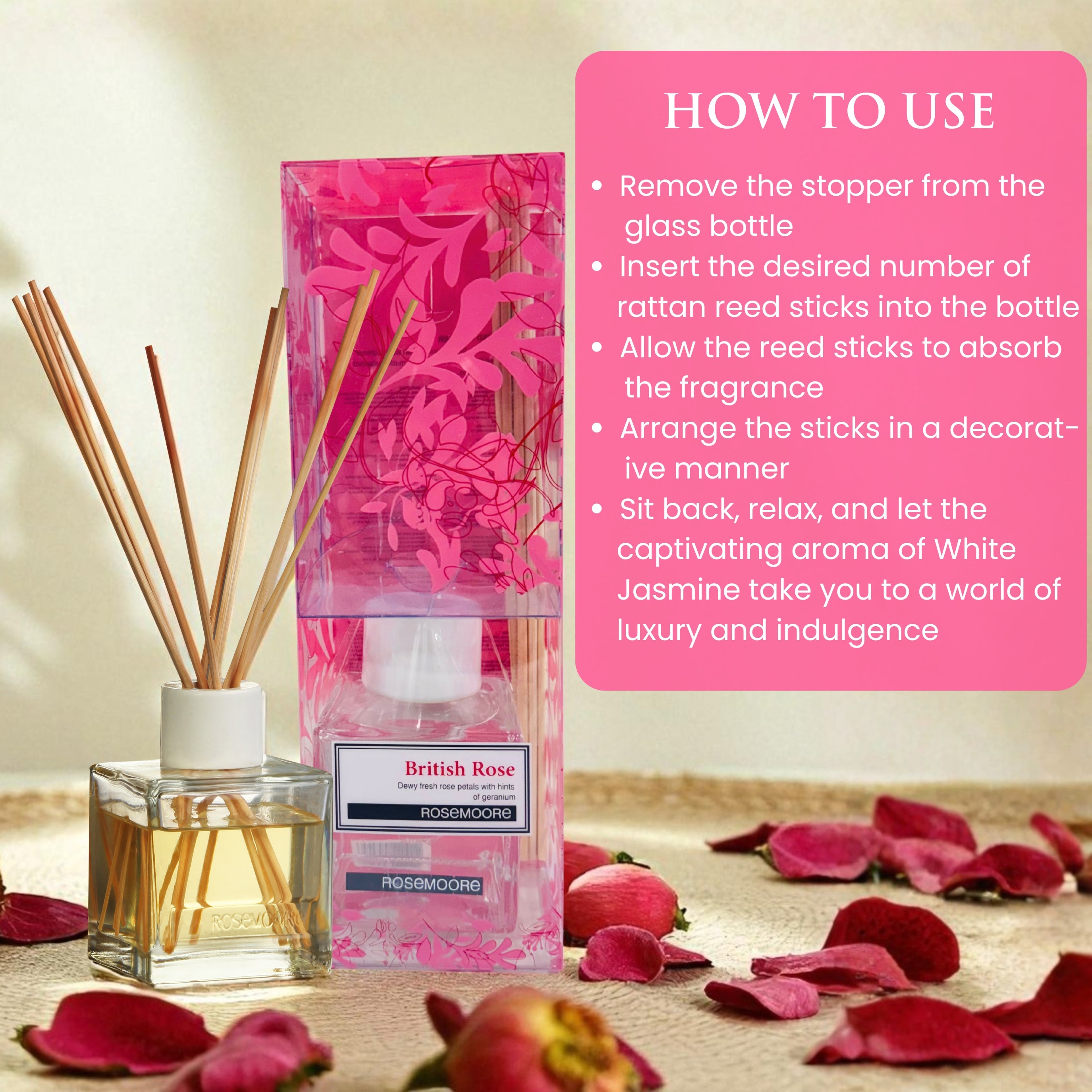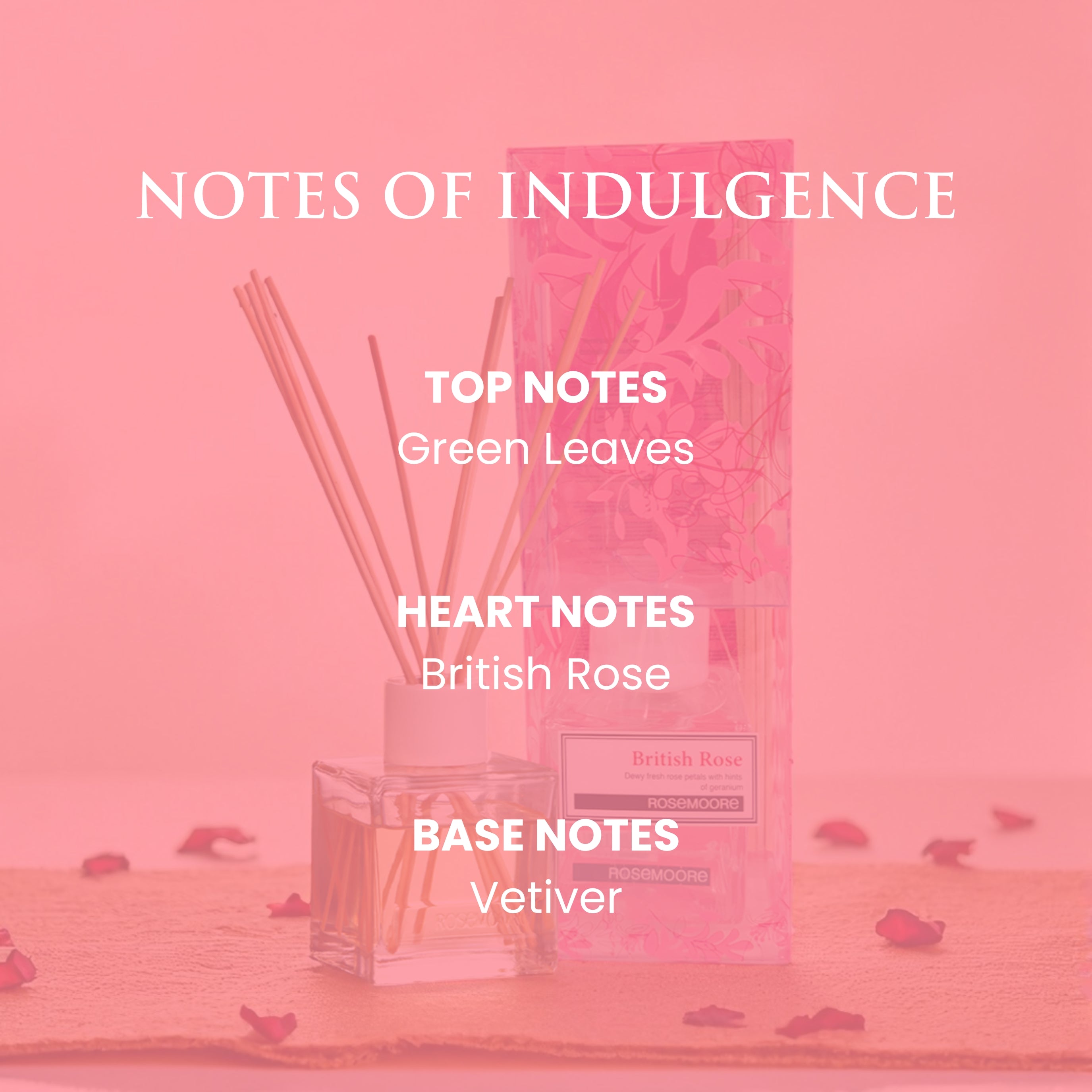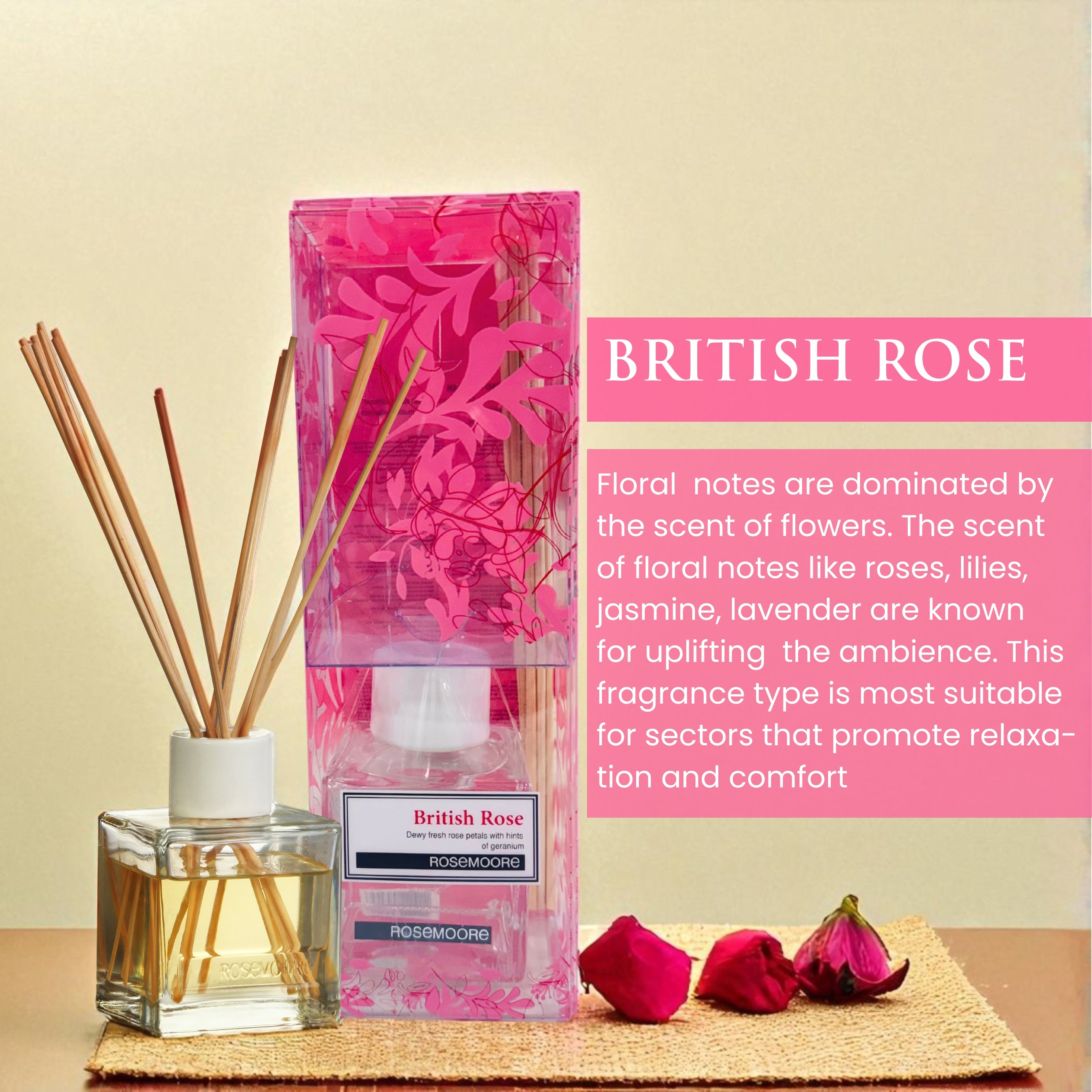Discover the essence of refinement with British Rose, your exquisite home fragrance. Imported from the UK, our Rosemoore Scented British Rose Reed Diffuser sets the standard for sophistication and elegance. Immerse yourself in the subtle yet enchanting aroma that fills your space with an air of luxury and charm.